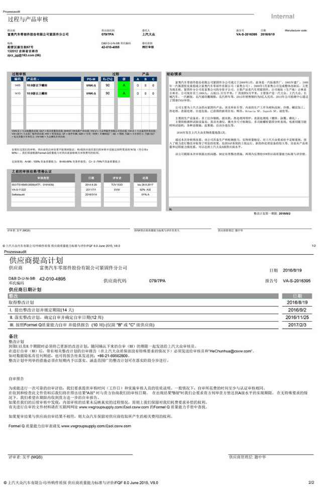 A级供应商审核报告--上海大众
